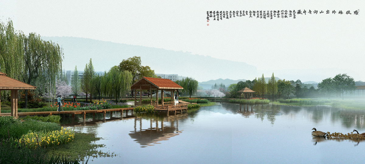 滨水栈道亭子景观后期psd素材源文件分层图层