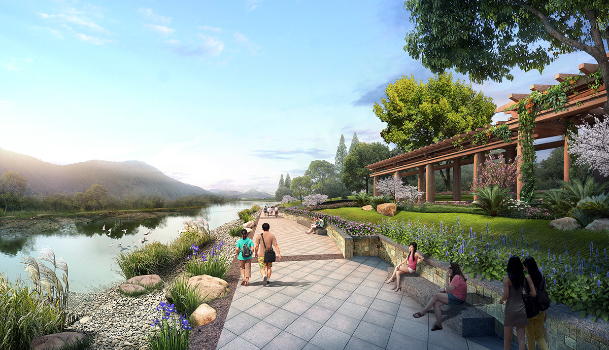 公园长廊湖边景观景观后期psd素材源文件分层图层