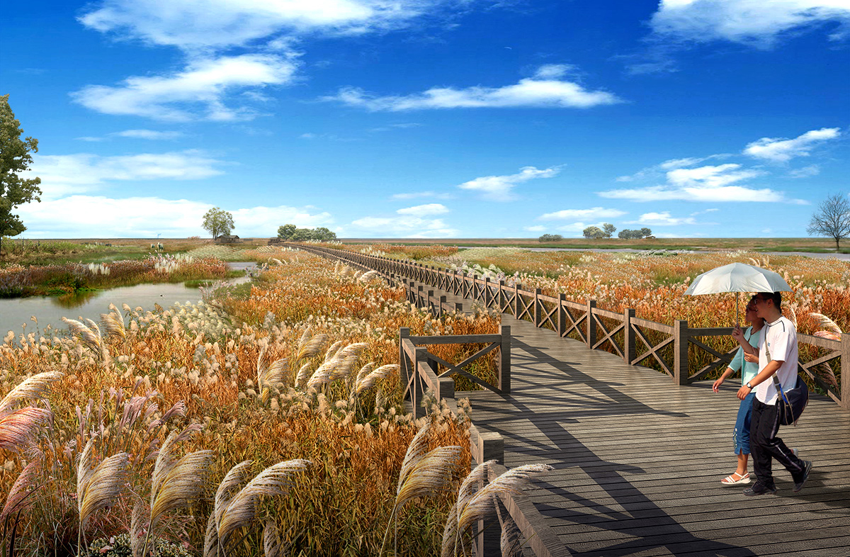 芦苇木栈道湖泊景观后期psd素材源文件分层图层