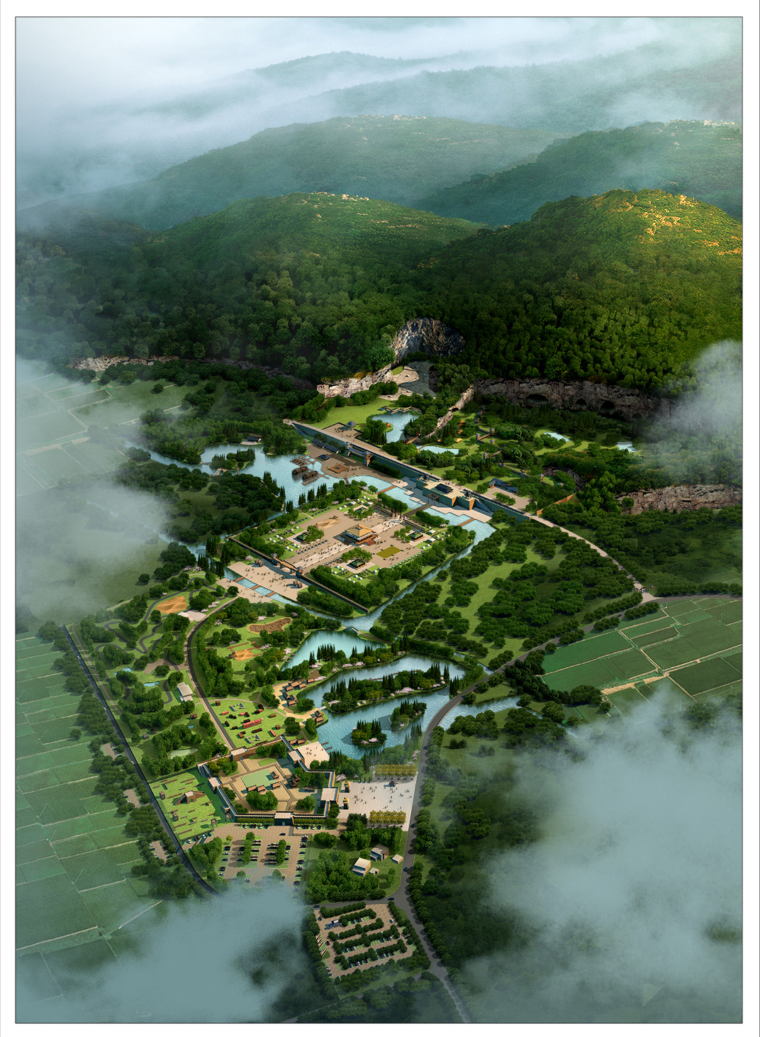 园林湖边鸟瞰图后期psd素材源文件分层图层