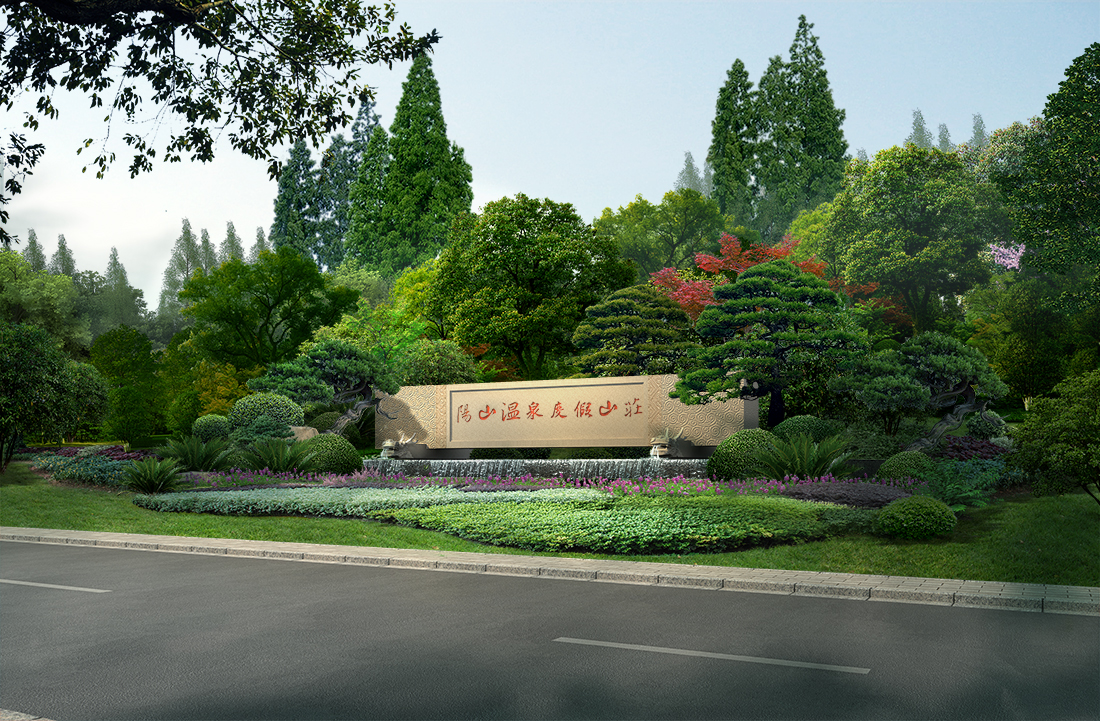 温泉酒店入口园林景观后期psd素材源文件分层图层