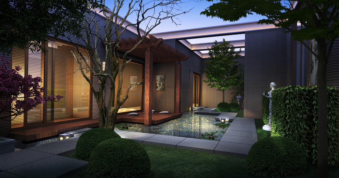 房屋别墅建筑院子景观后期psd素材源文件分层图层