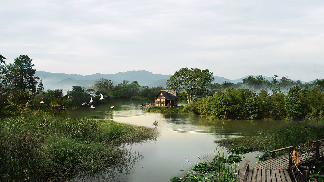 公园湖泊木栈道园林后期psd素材源文件分层图层