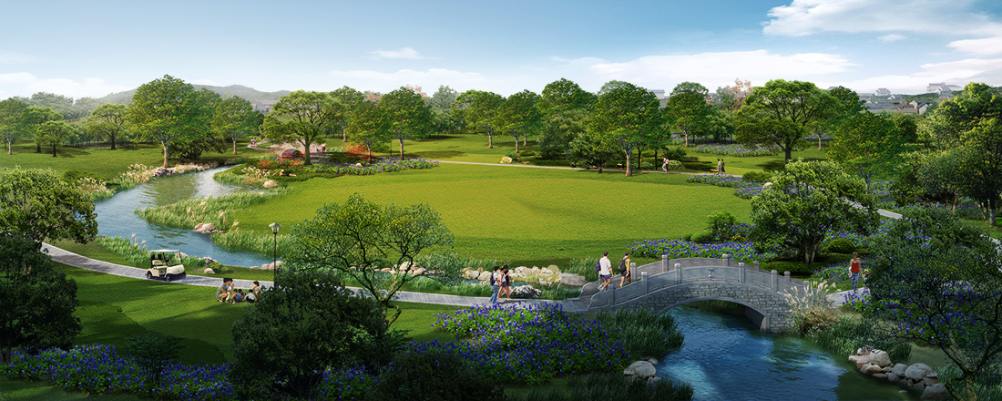 公园河流桥梁草坪后期psd素材源文件分层图层