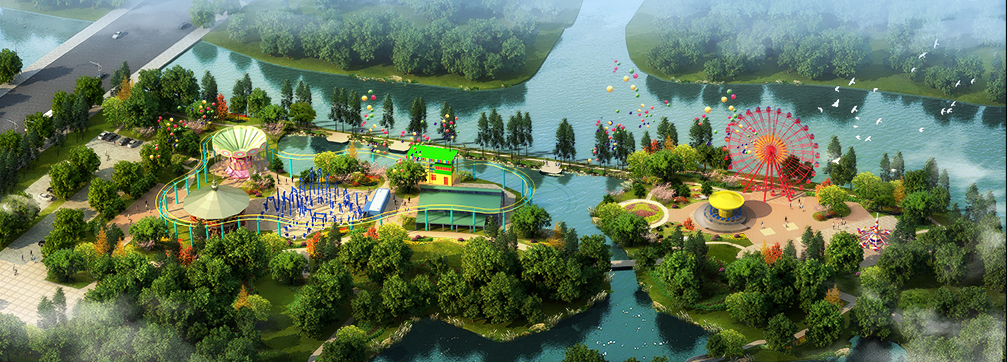 游乐场设备鸟瞰景观后期psd素材源文件分层图层
