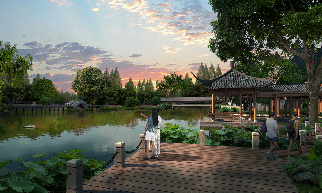 苏州园林湖泊亭台楼阁后期psd素材源文件分层图层