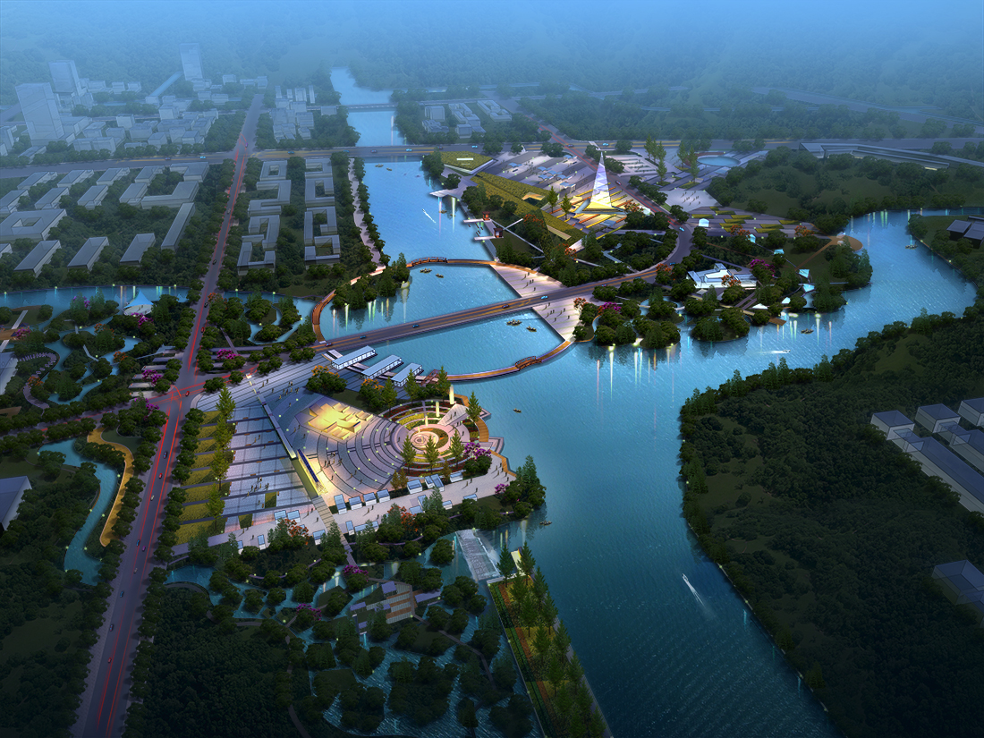 广场湖泊鸟瞰图后期psd素材源文件分层图层