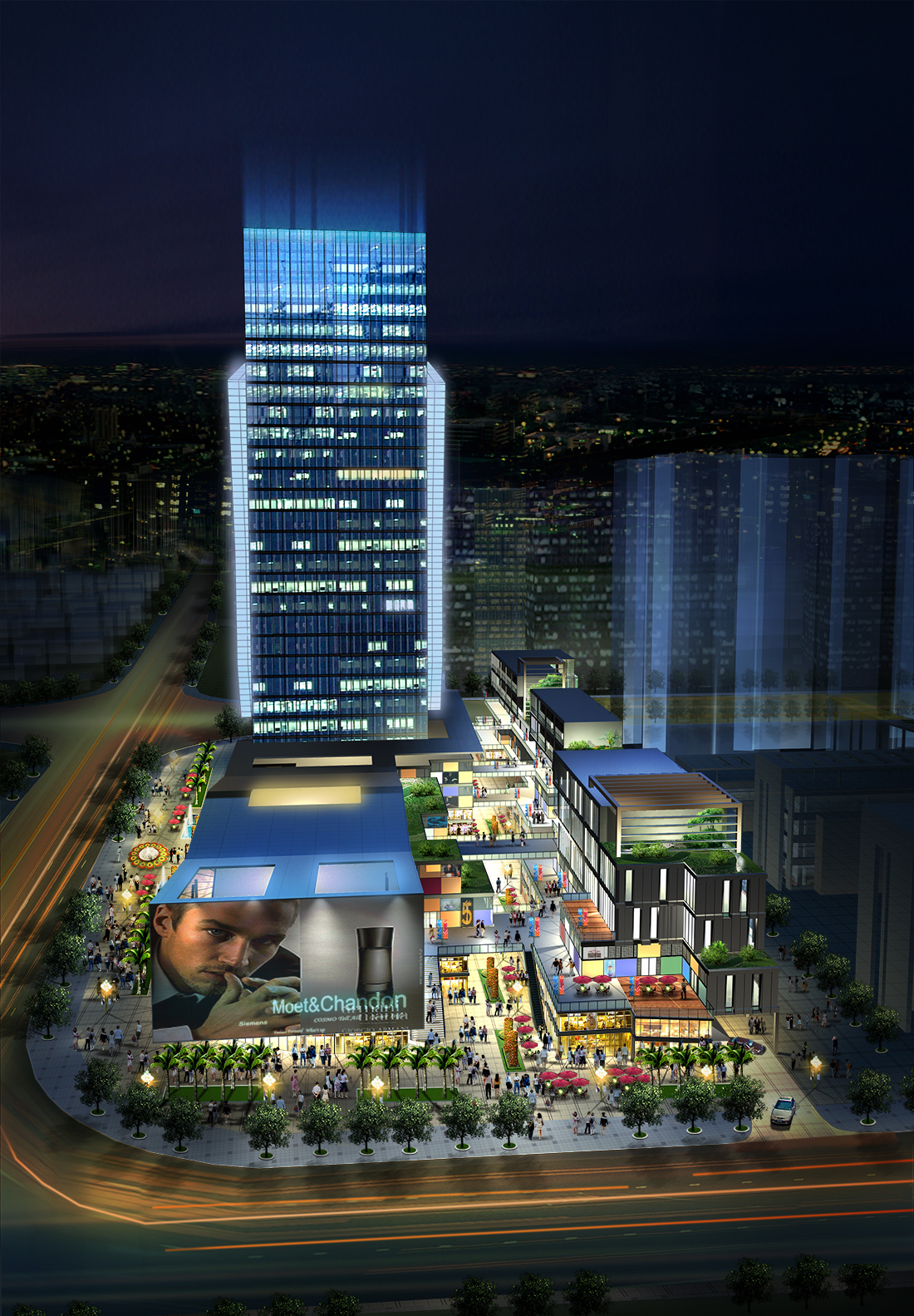 商业广场办公大楼鸟瞰图后期psd素材源文件分层图层