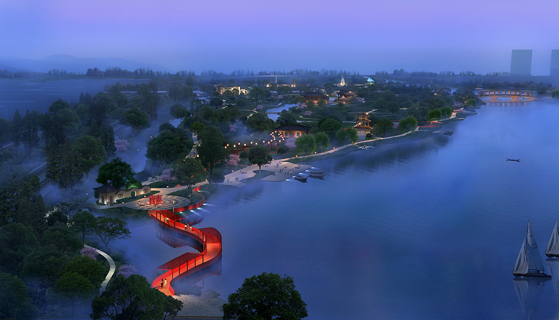 古风建筑江边园林夜景后期psd素材源文件分层图层