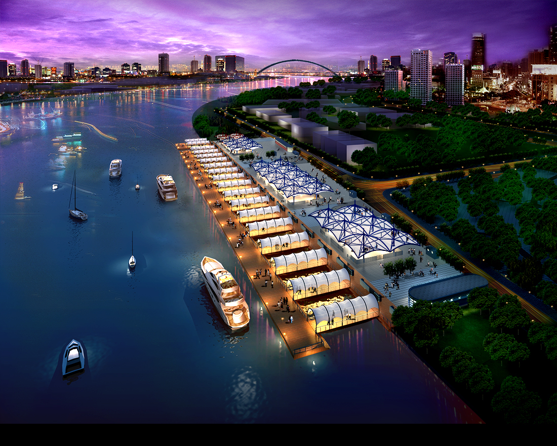 城市江边游艇鸟瞰图后期psd素材源文件分层图层