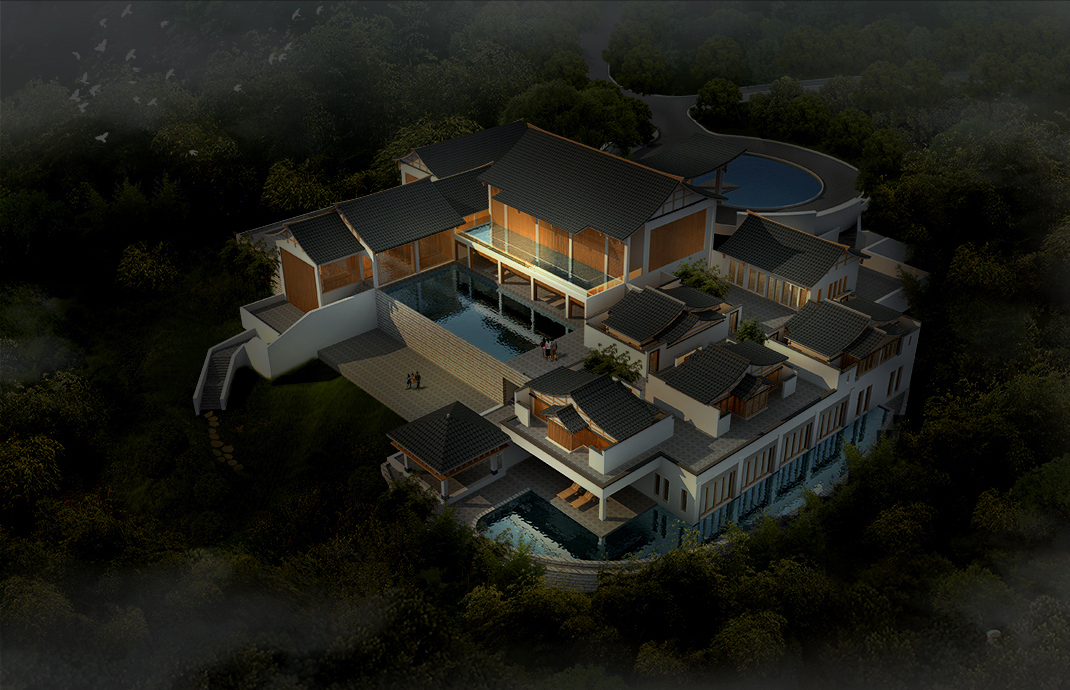现代泳池别墅建筑后期psd素材源文件分层图层