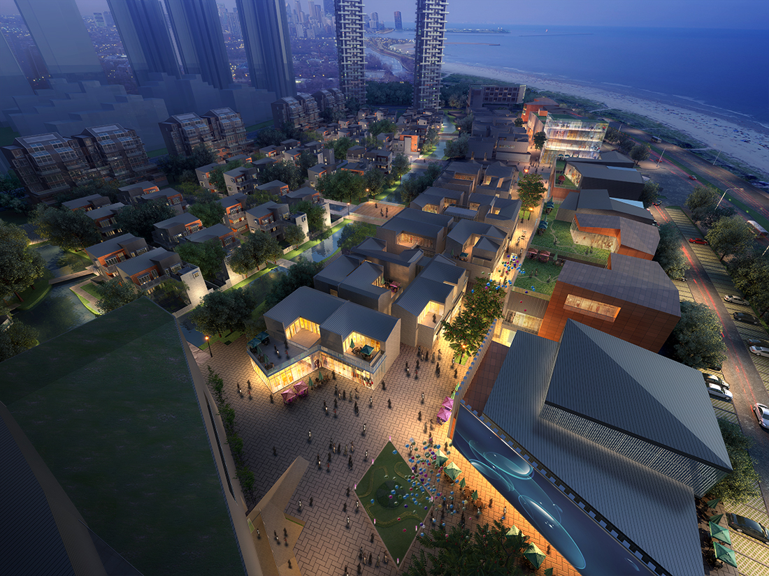 商业街海边大楼夜景后期psd素材源文件分层图层