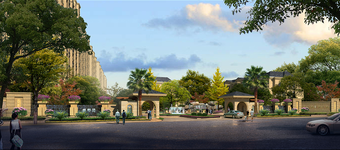 小区门头建筑后期psd素材源文件分层图层