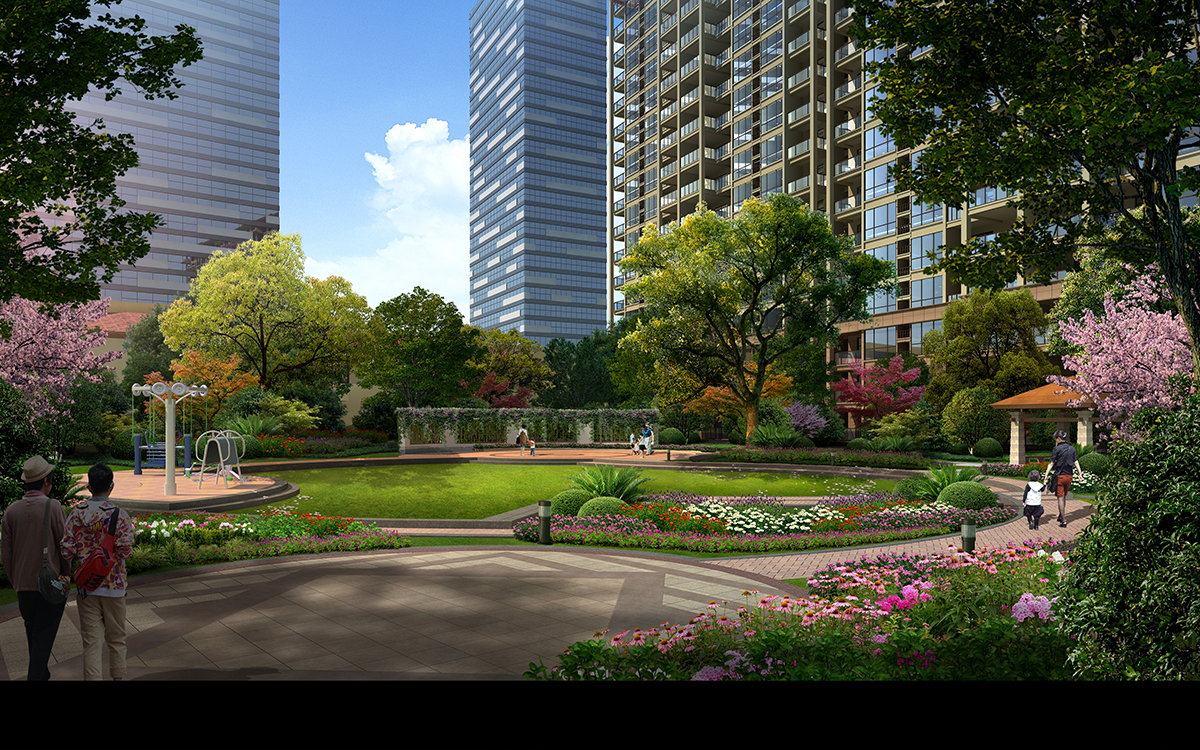小区中庭花园园林景观后期psd素材源文件分层图层