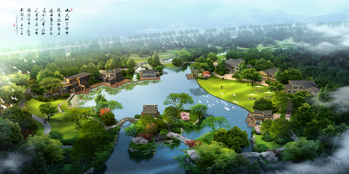 别墅湖泊鸟瞰图后期psd素材源文件分层图层