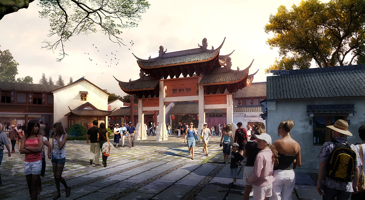 古建筑商业街后期psd素材源文件分层图层