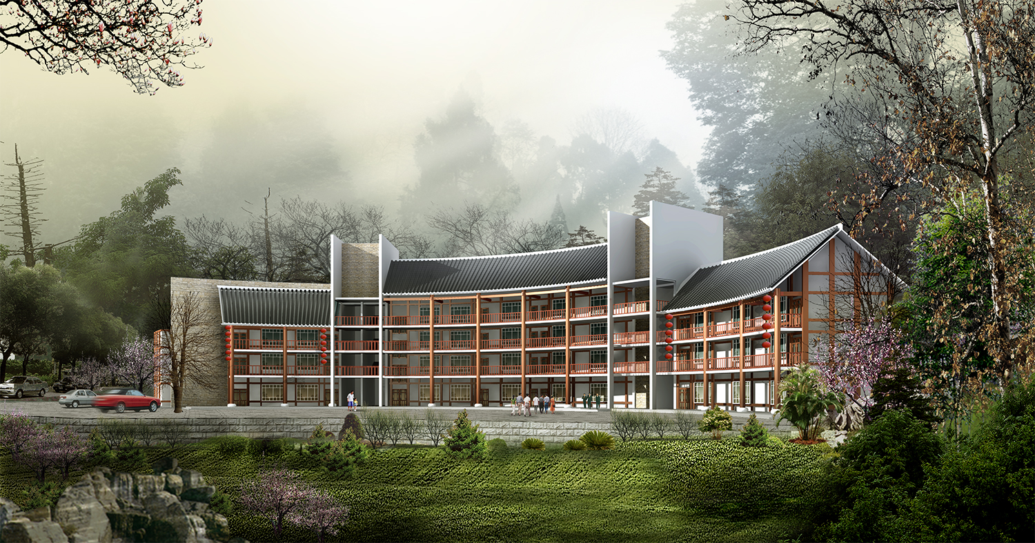 古风酒店建筑园林景观后期psd素材源文件分层图层