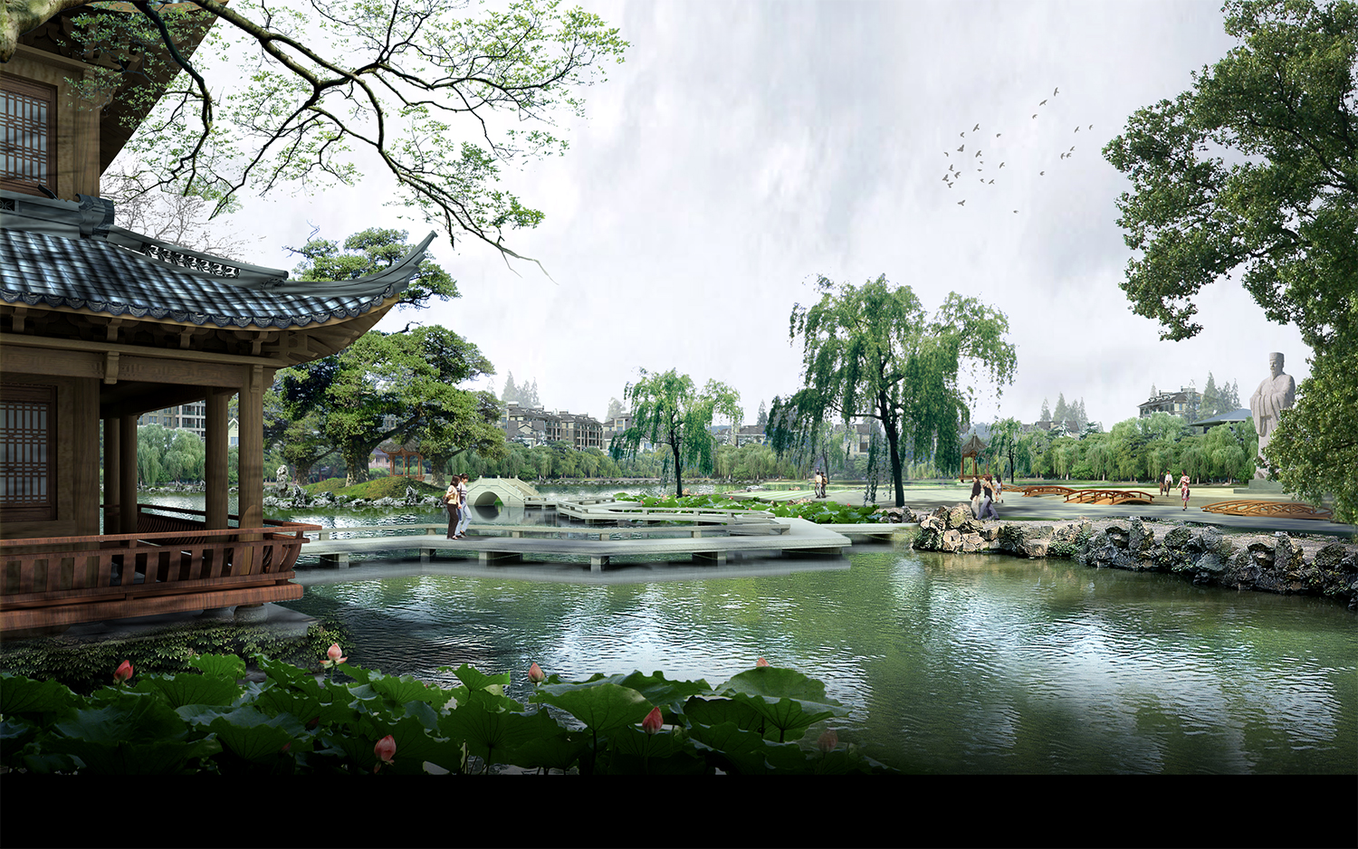 公园荷塘桥亭园林景观后期psd素材源文件分层图层
