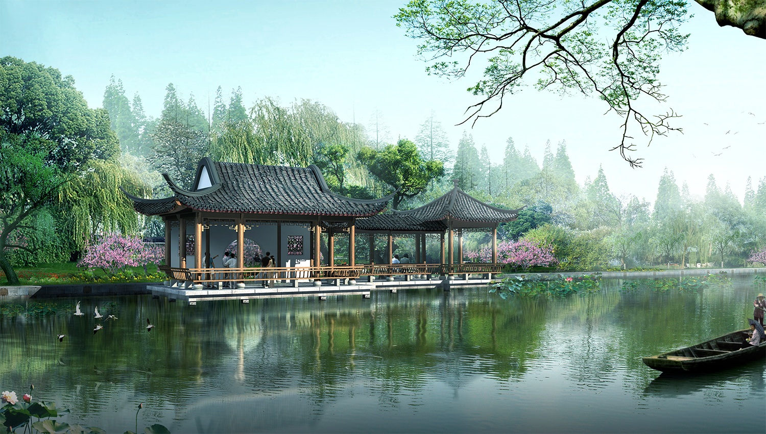 公园荷塘亭子园林景观后期psd素材源文件分层图层
