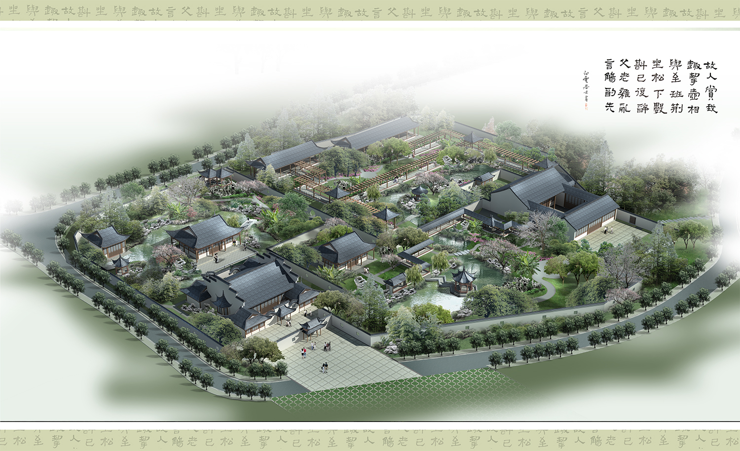 古风建筑院落鸟瞰图后期psd素材源文件分层图层