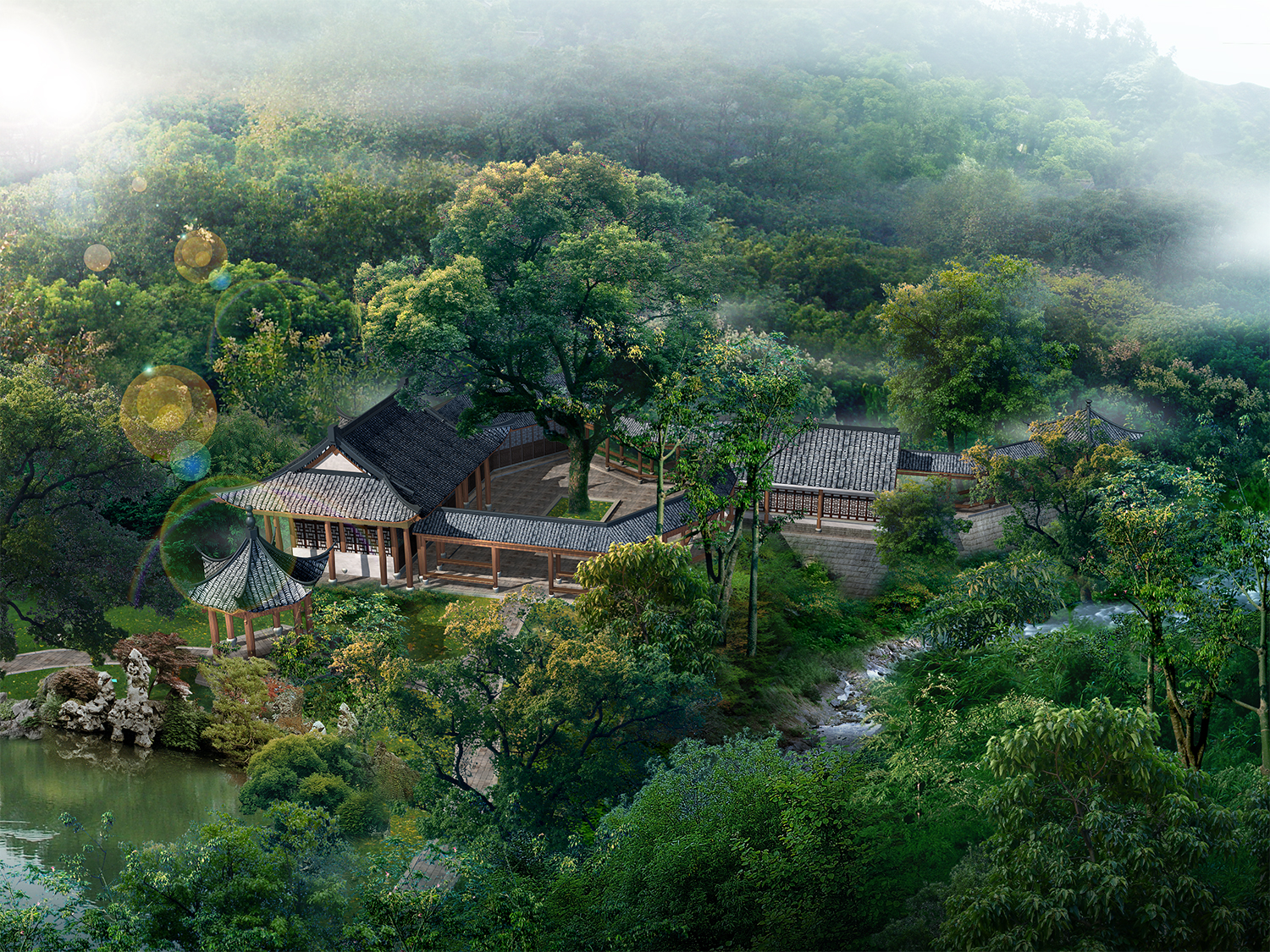 公园中式朗庭园林景观后期psd素材源文件分层图层