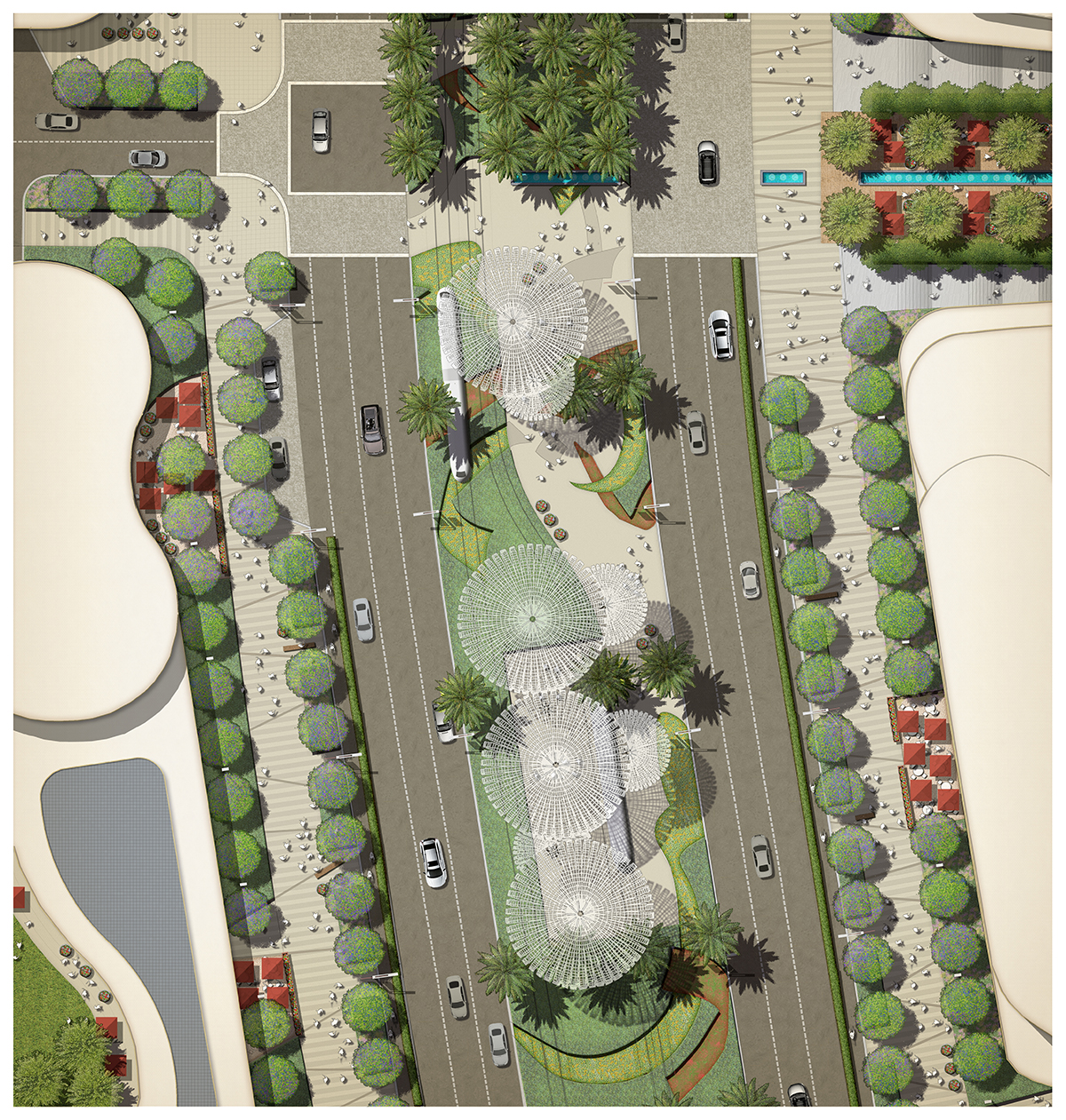 城市道路绿化园林景观鸟瞰图后期psd素材源文件分层图层