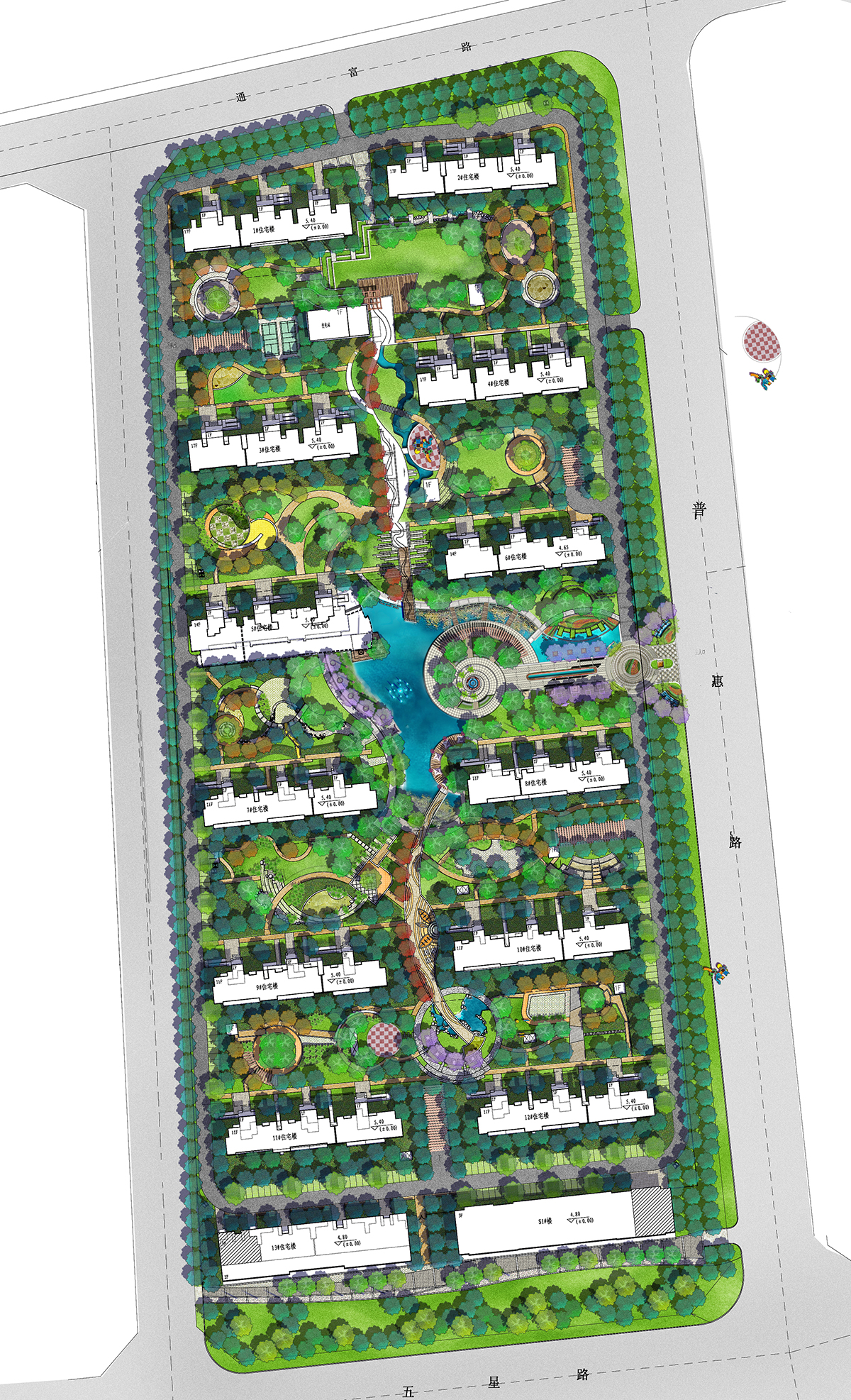 小区道路绿化园林规划景观鸟瞰图后期psd素材源文件分层图层