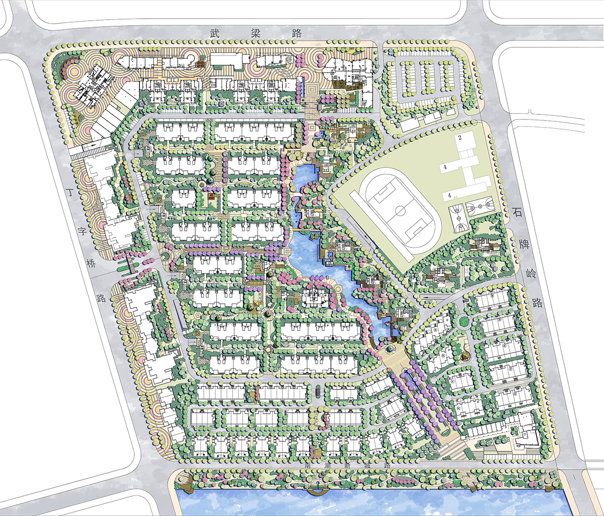 小区道路绿化园林规划鸟瞰图后期psd素材源文件分层图层