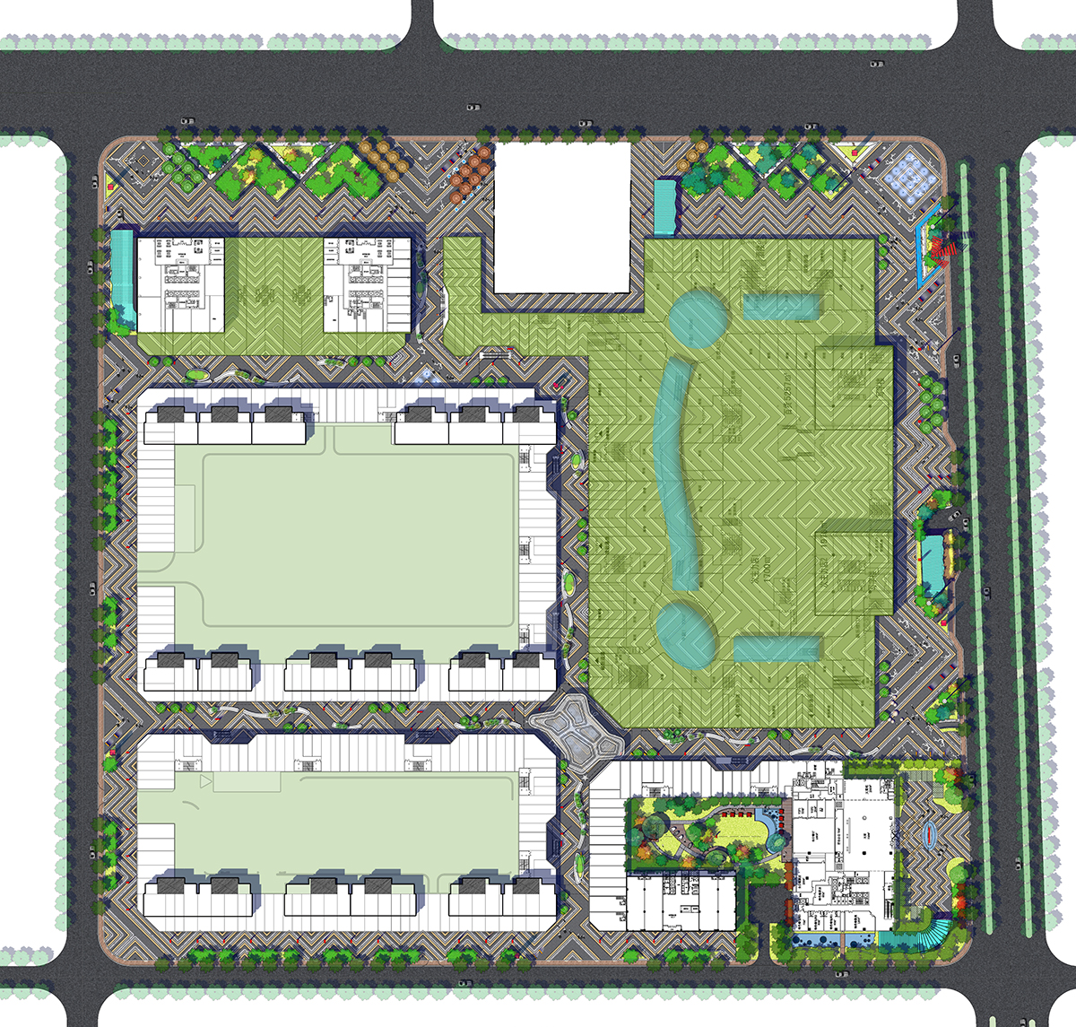 小区道路绿化规划鸟瞰图后期psd素材源文件分层图层