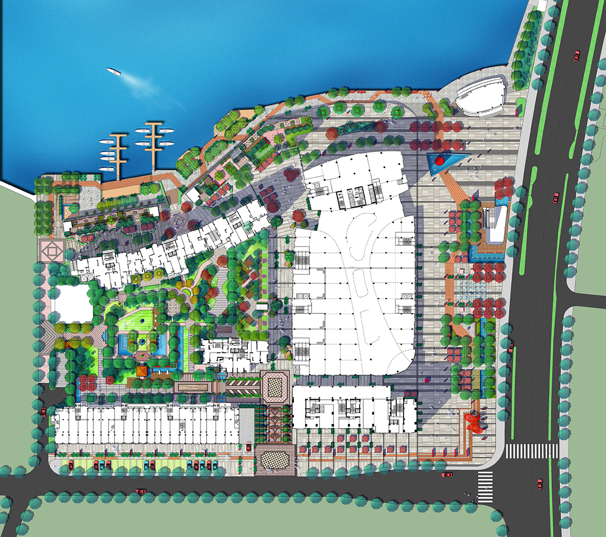 小区道路绿化园林景观鸟瞰图后期psd素材源文件分层图层