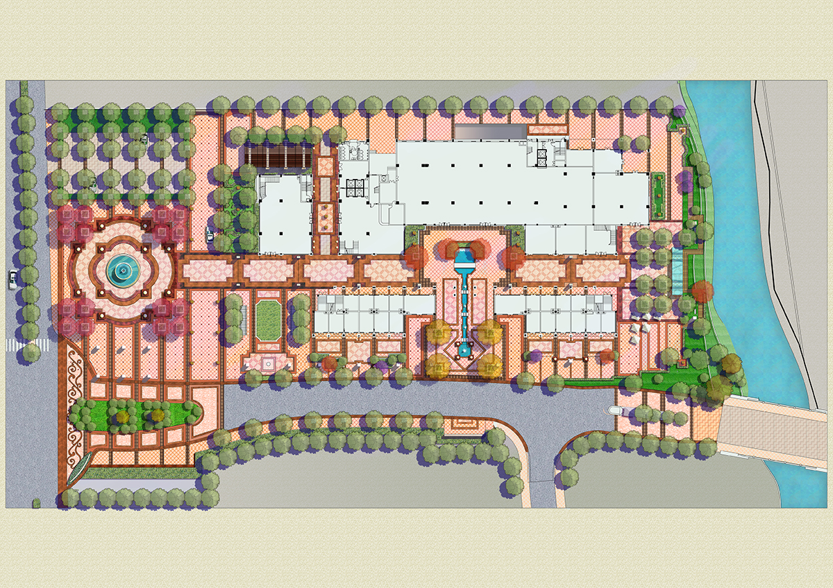 小区道路绿化园林景观鸟瞰图后期psd素材源文件分层图层