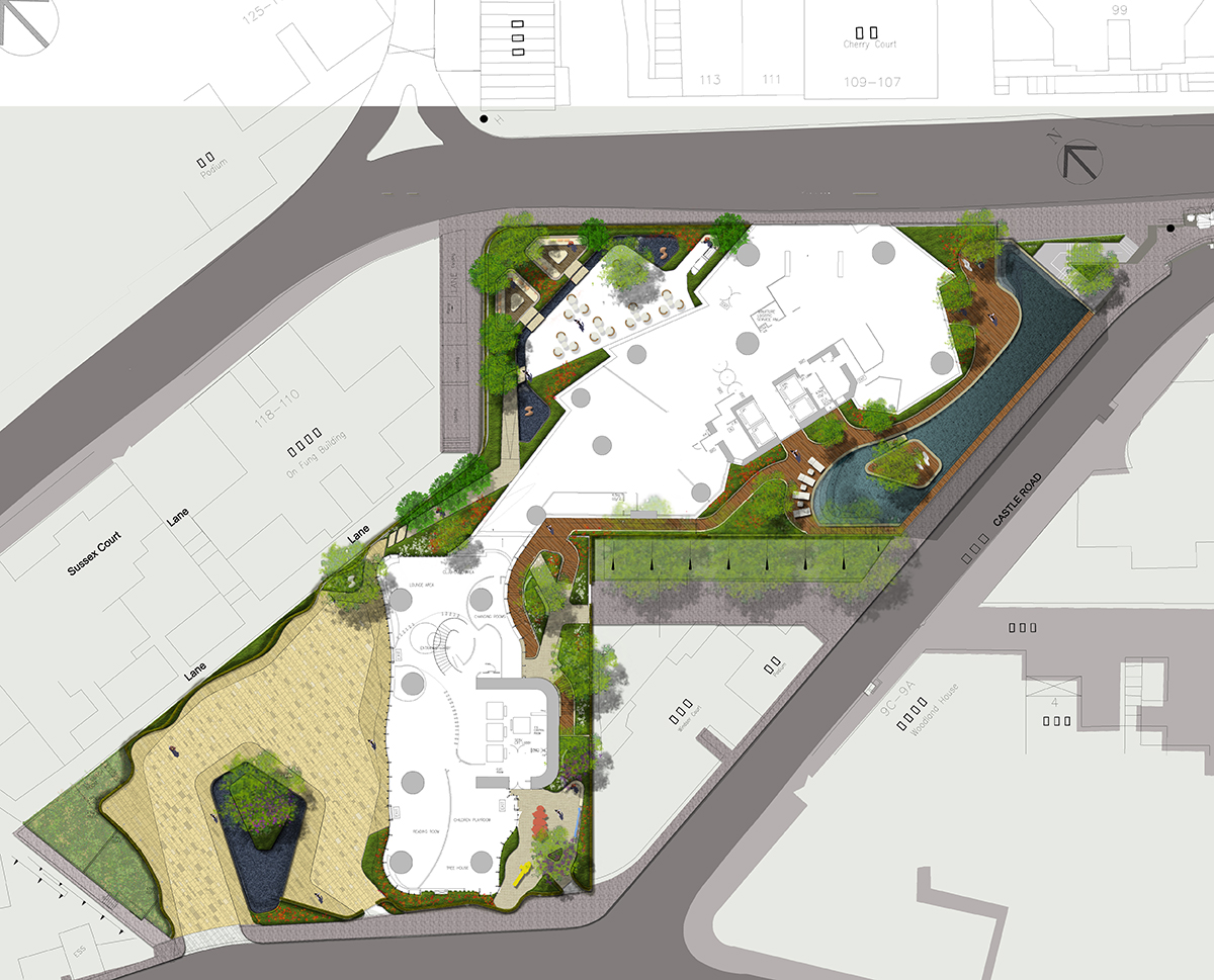 小区道路绿化园林景观鸟瞰图后期psd素材源文件分层图层