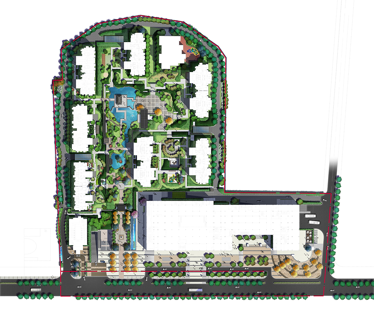小区道路绿化园林景观鸟瞰图后期psd素材源文件分层图层