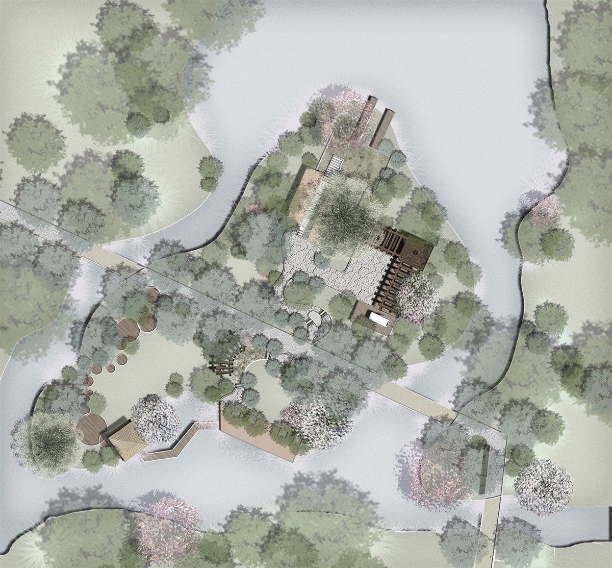 公园湖泊草坪园林规划后期psd素材源文件分层图层