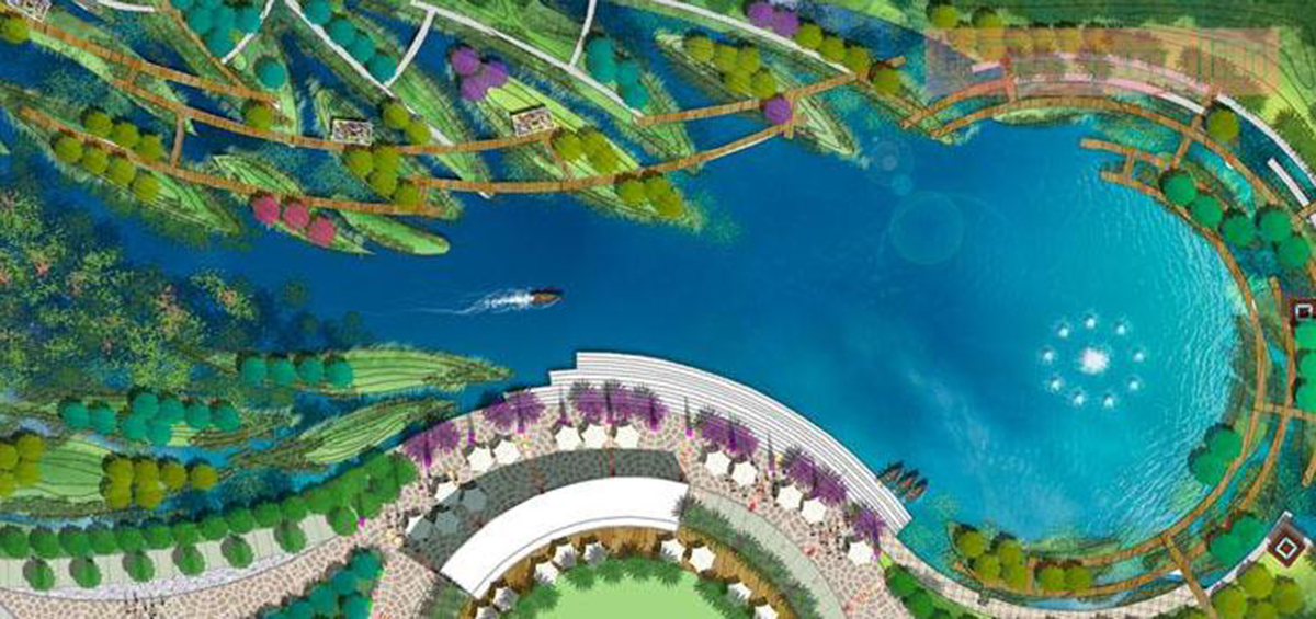 公园湖泊草坪园林规划鸟瞰图后期psd素材源文件分层图层