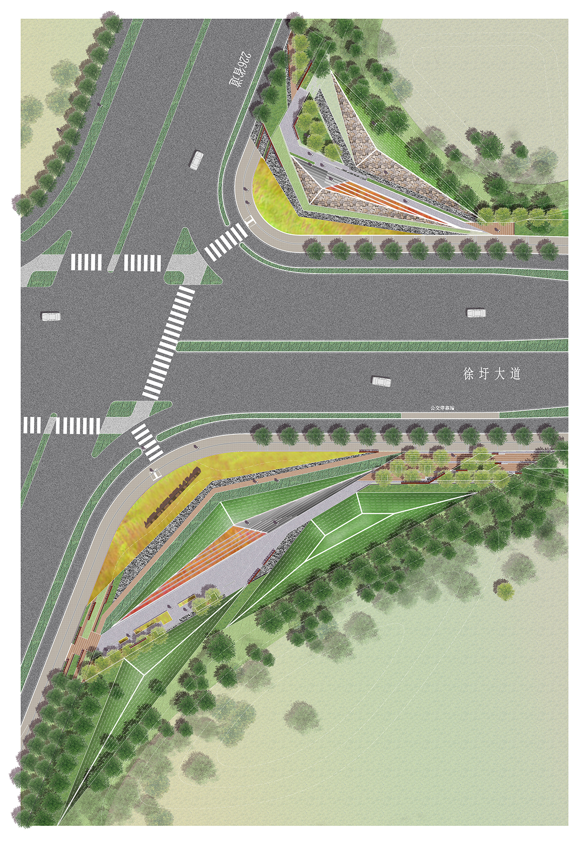 十字路口园林景观规划鸟瞰图后期psd素材源文件分层图层