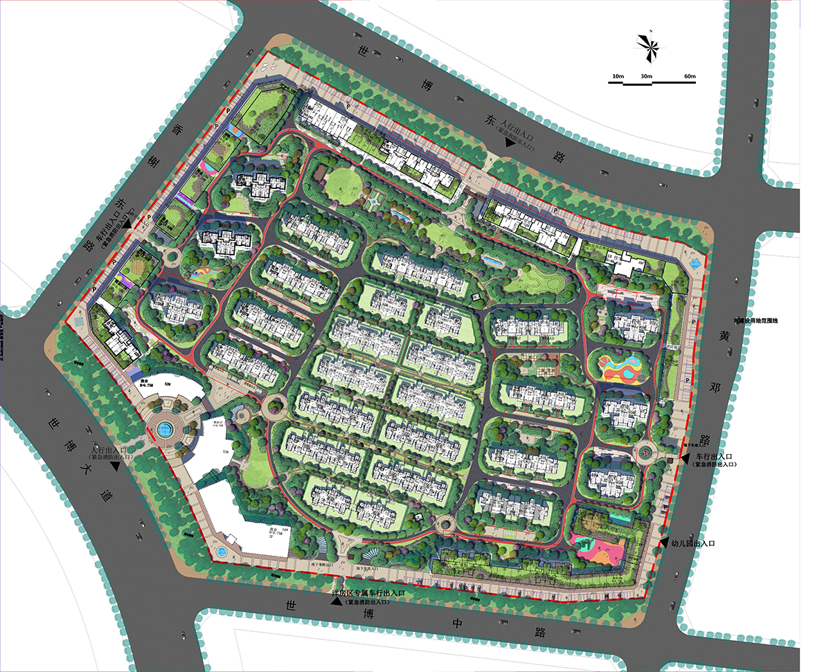 城市道路小区园林规划瞰图后期psd素材源文件分层图层