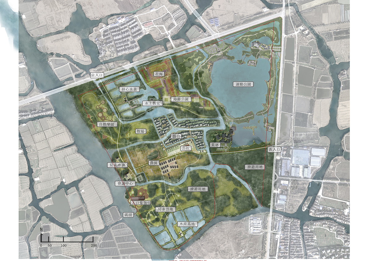 公园湖泊绿化园林景观鸟瞰图后期psd素材源文件分层图层