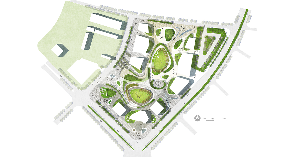 城市道路绿化园林景观鸟瞰图后期psd素材源文件分层图层