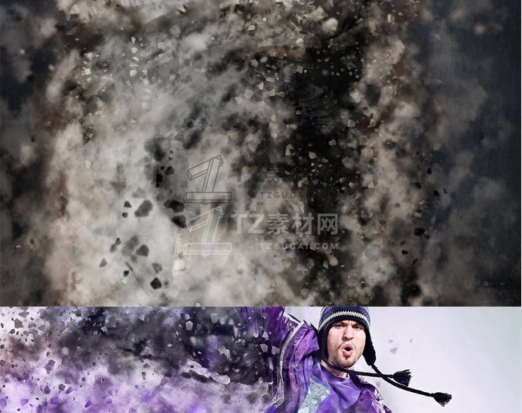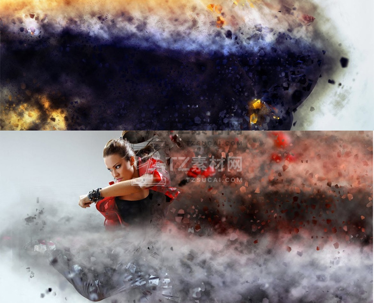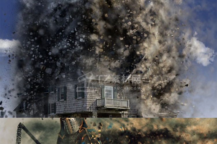 PS电影大片爆炸炸裂碎片烟尘特效atn预设动作