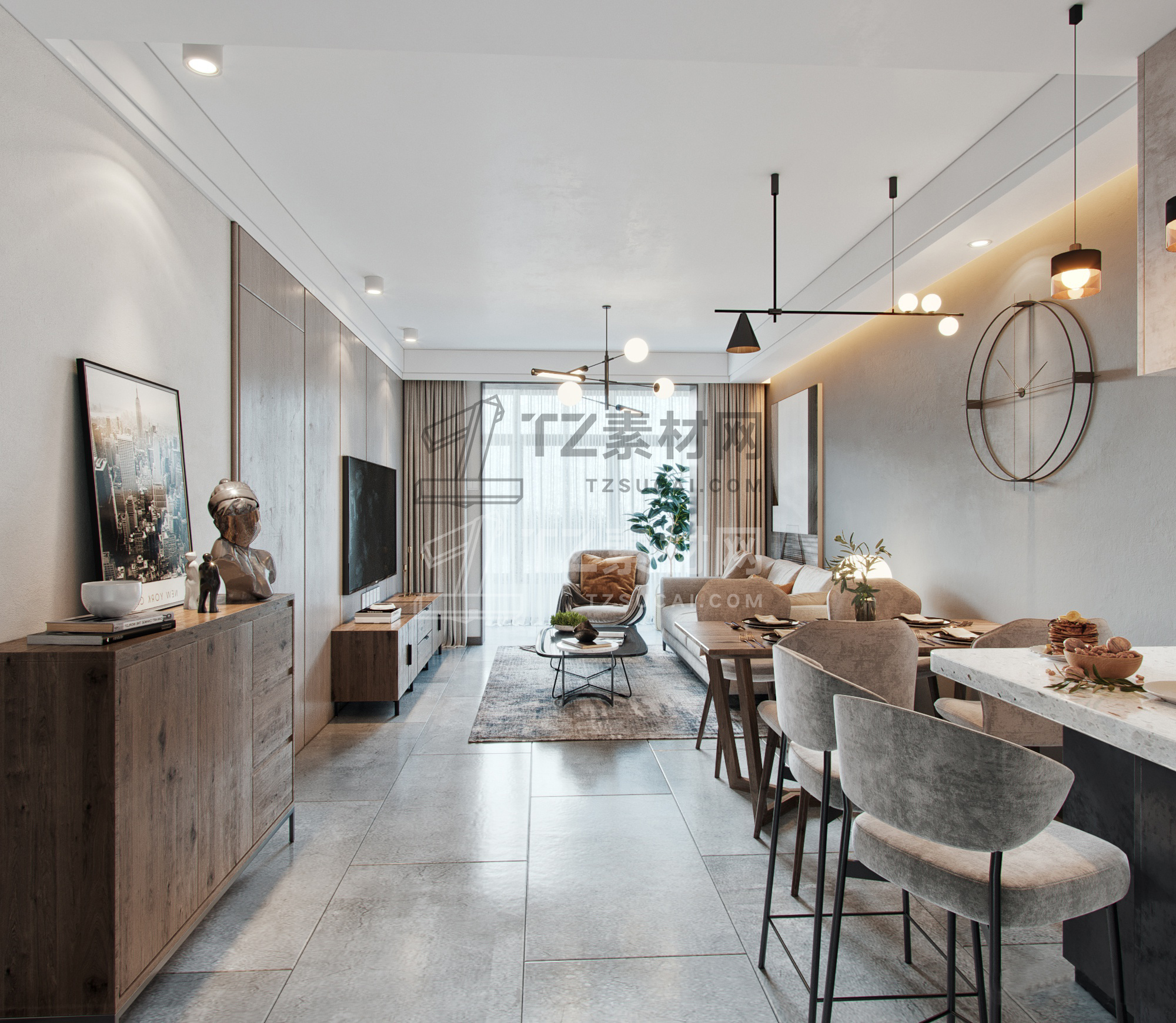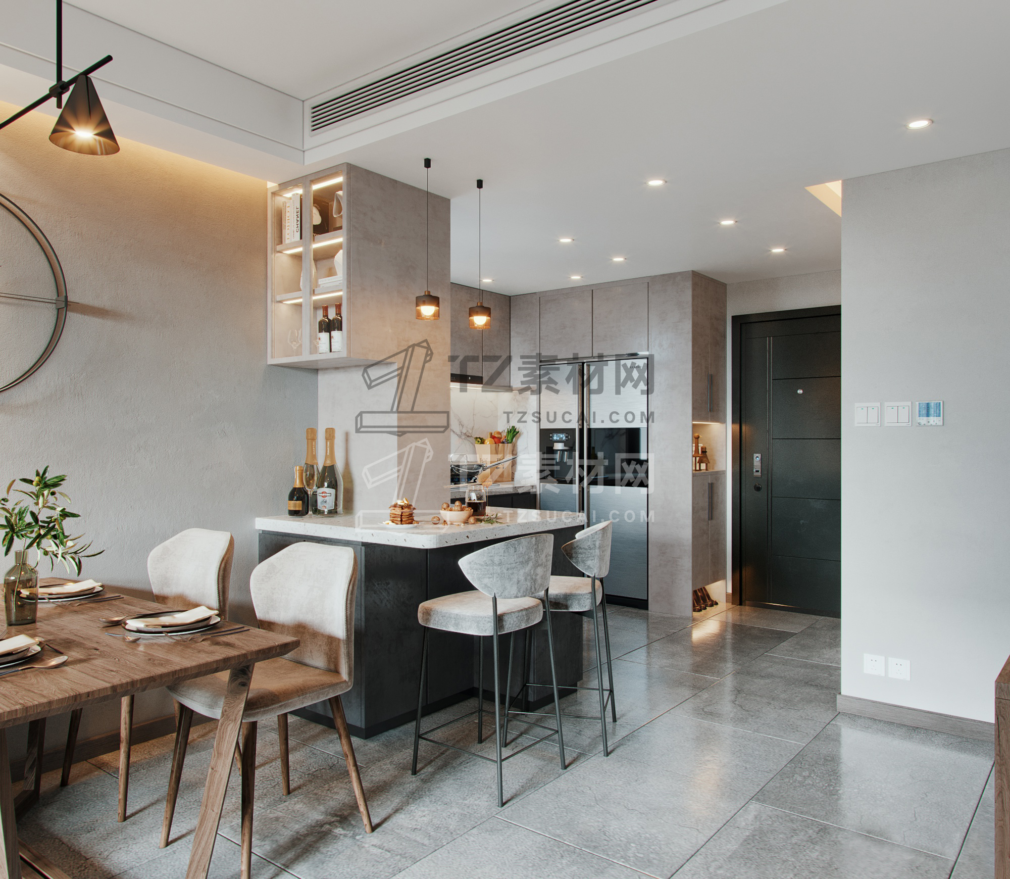 现代北欧客餐厅厨房