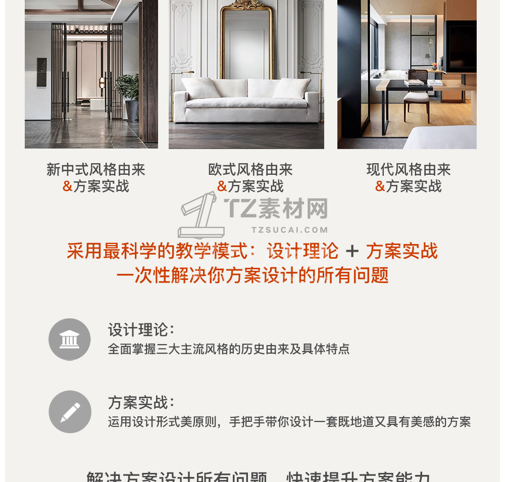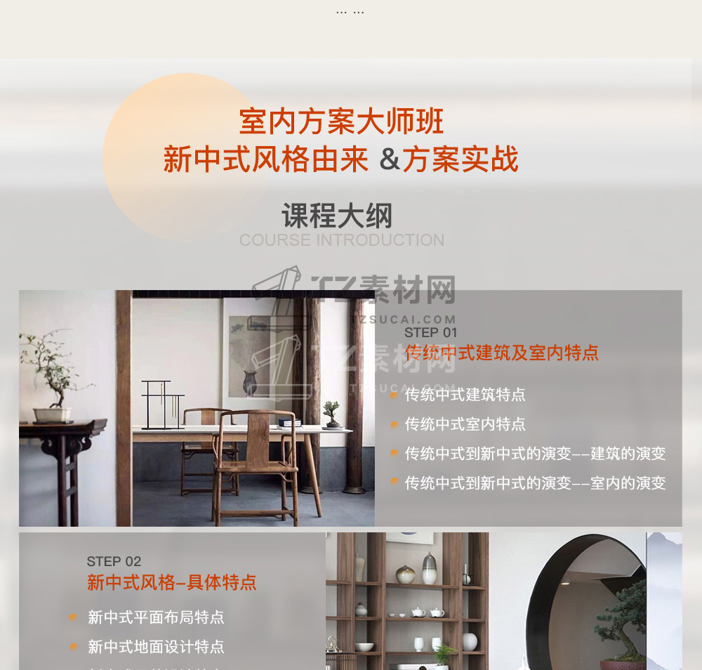本套课程将学习室内三大主流风格之一:新中式风格,会讲解新中式风格的由来,传统中式建筑及室内特点;并且进行方案实战,运用设计形式美原则,手把手带你设计一套既地道又具有美感的设计方案。通过学习本次课程,你的方案设计能力将直线上升,确保做新中式地道、做任何项目都具有美感。