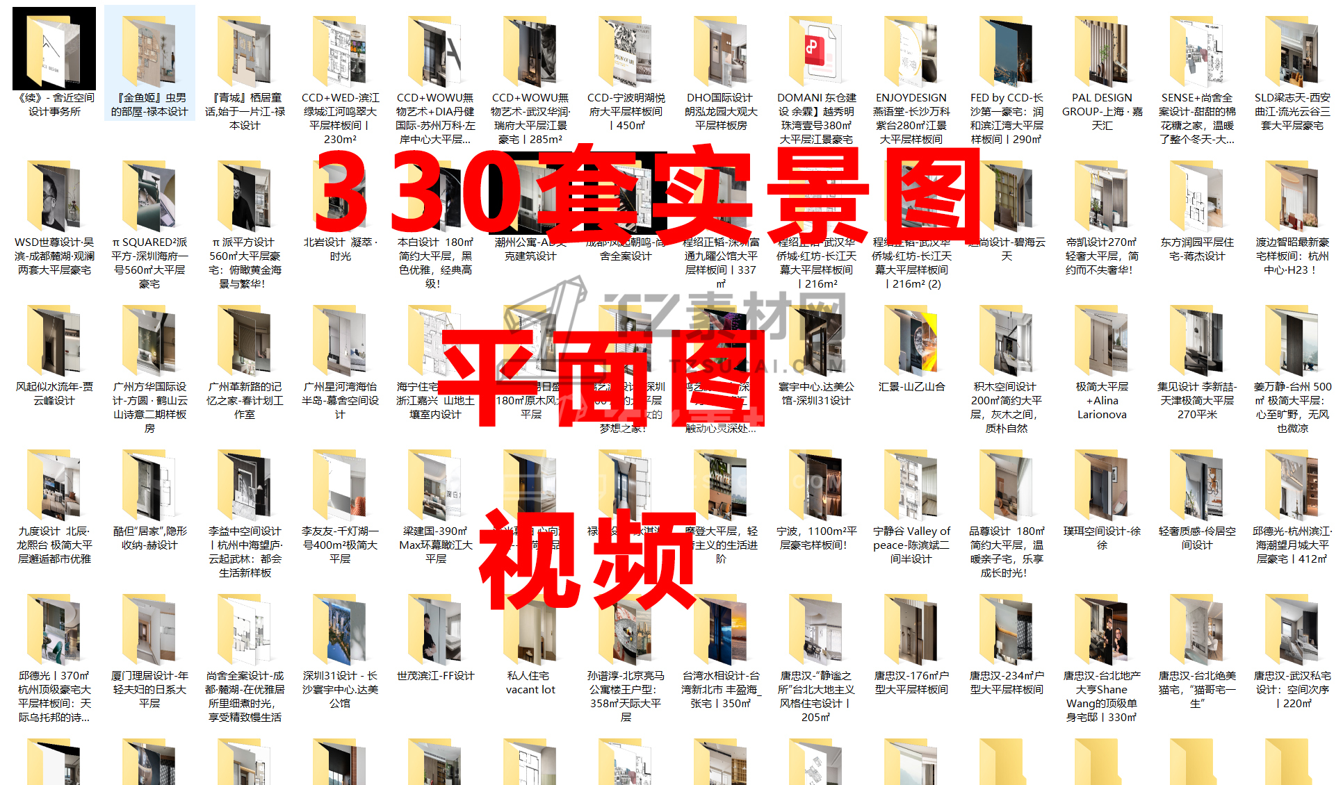 一共32G大容量,超大的学习内容!让你成为设计界大师! 85套案例解析让你快速学习大平层设计要点与难点。 300套大师级实景图+平面图+视频让你综合运用到自已的设计中! 还可以作为朋友圈展示与营销