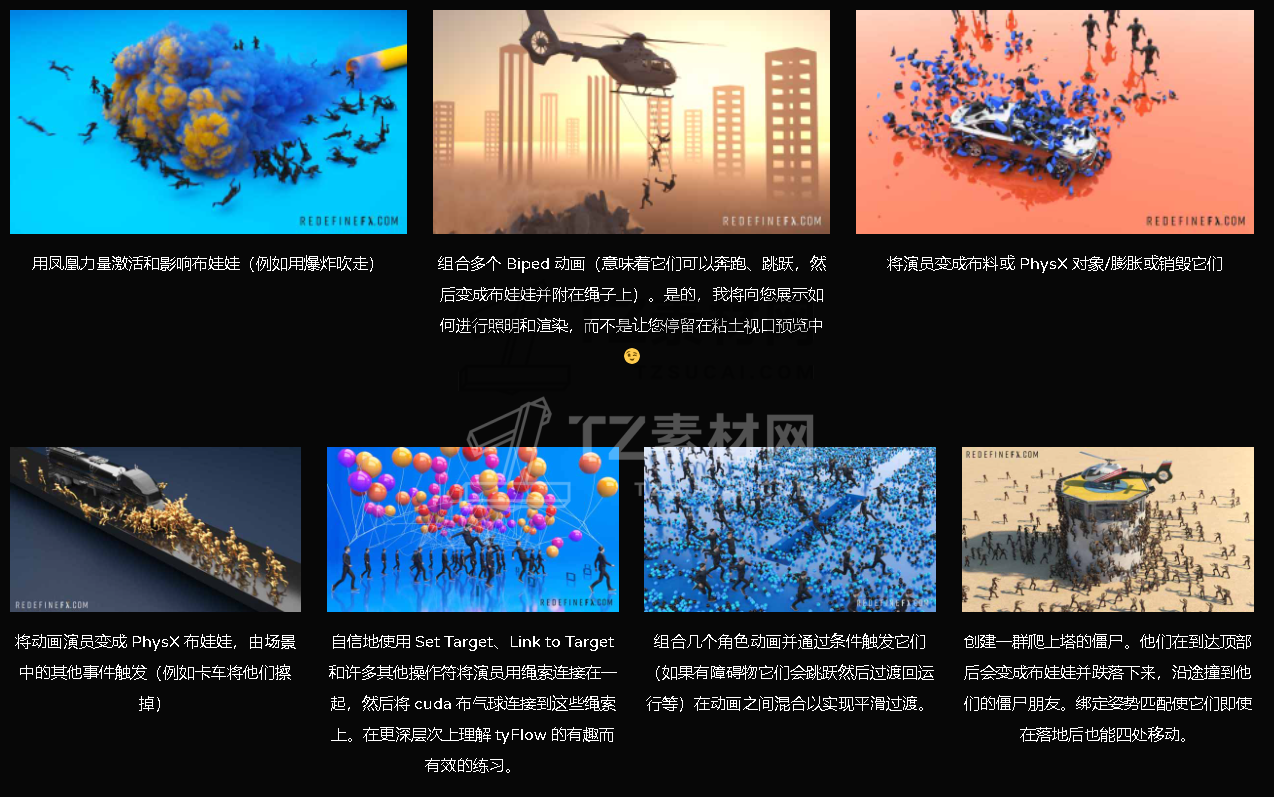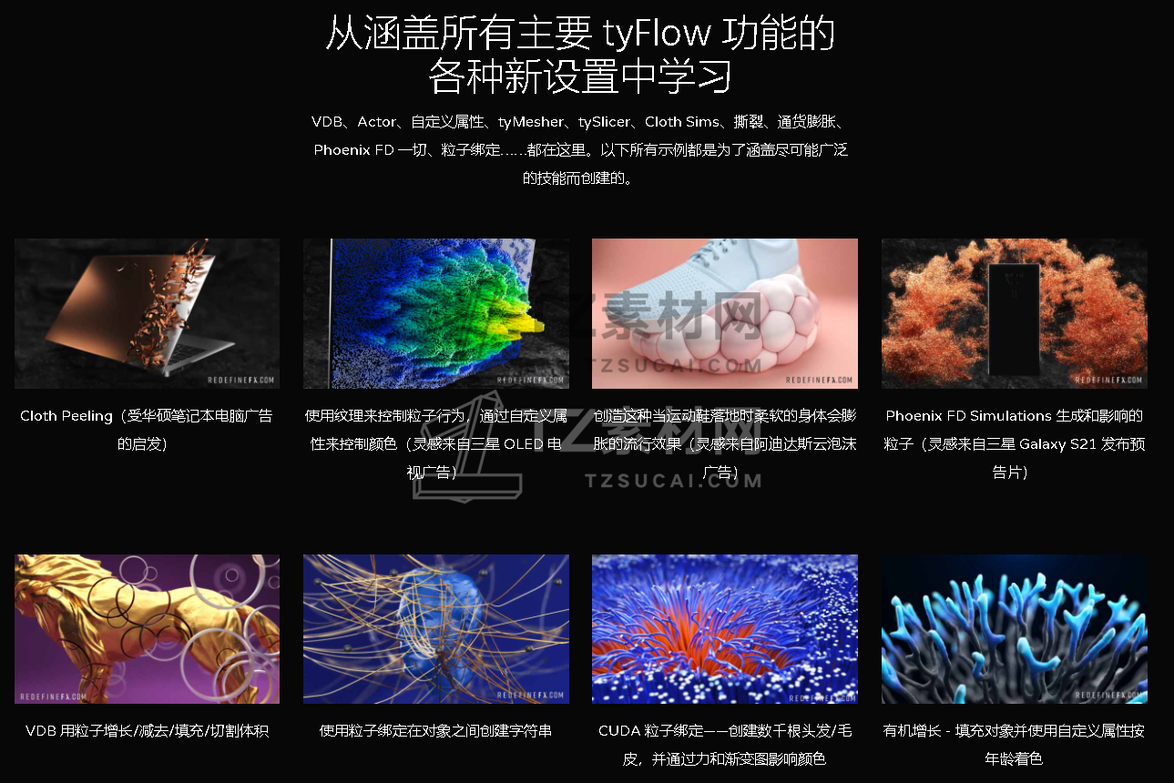 从涵盖每个主要 tyFlow 功能的各种新设置中学习: