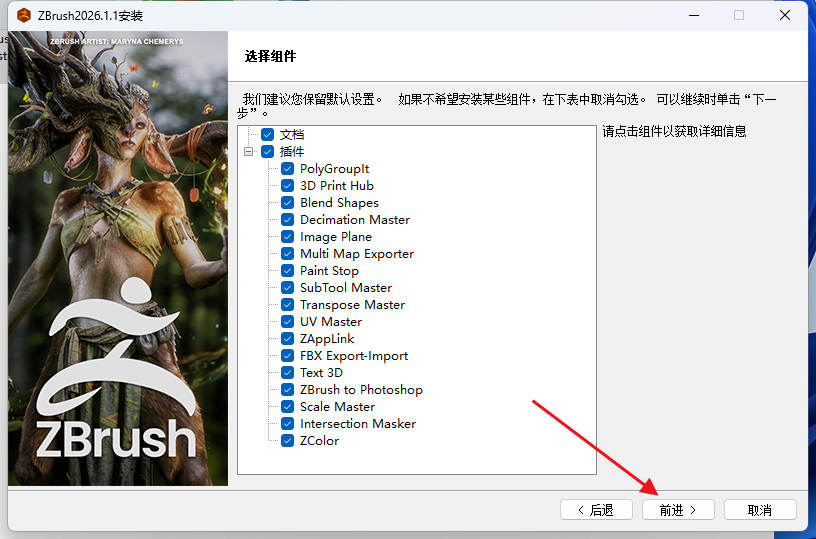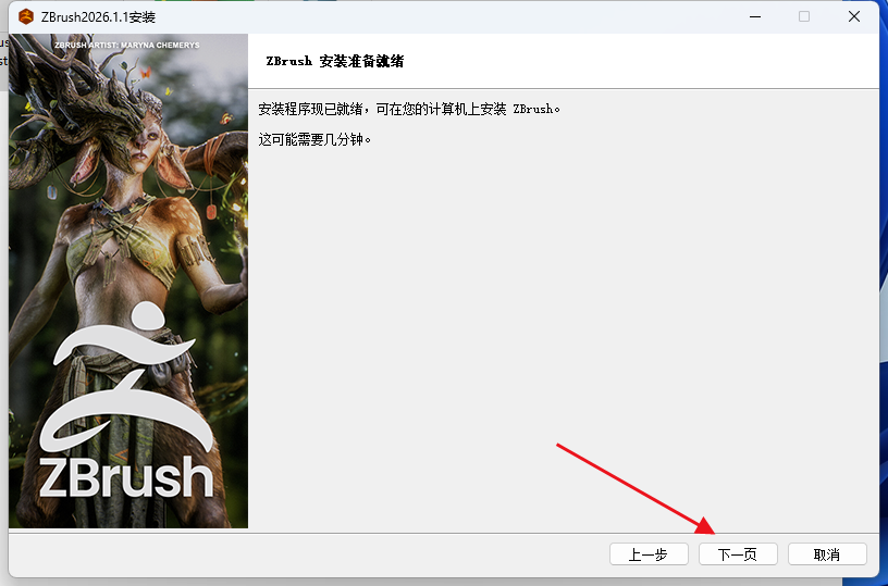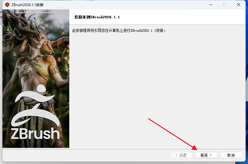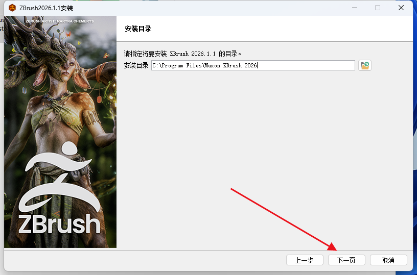 双击安装Maxon_ZBrush_2026.1.1_Installer.exe,不要安装到中文路径下,完成