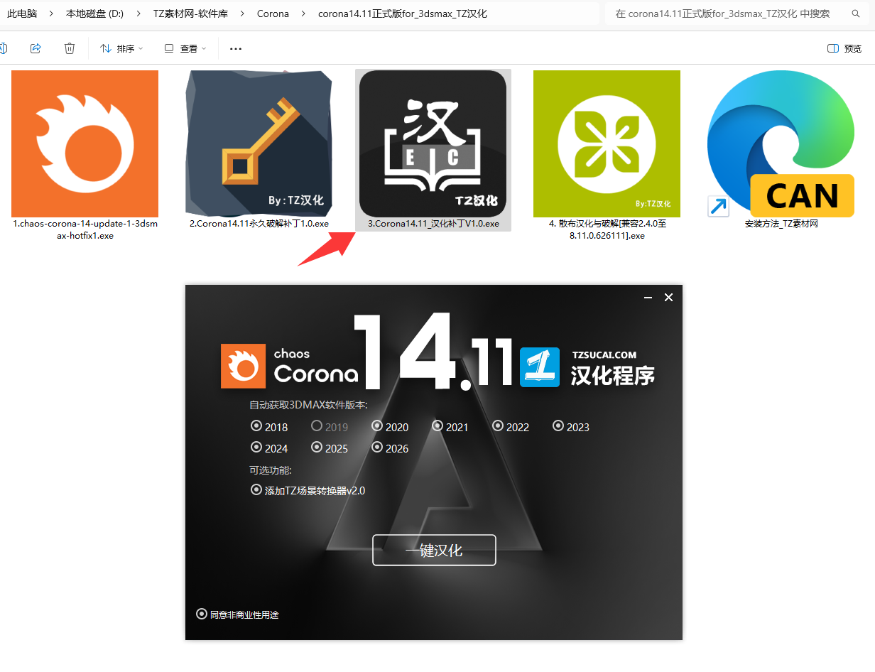 如需汉化,可运行程序3.Corona14.11_汉化补丁V1.0.exe