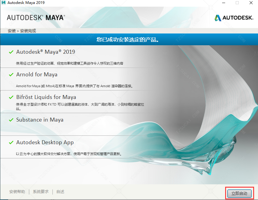 7、成功安装后,点击立即启动,对maya2019进行激活操作;