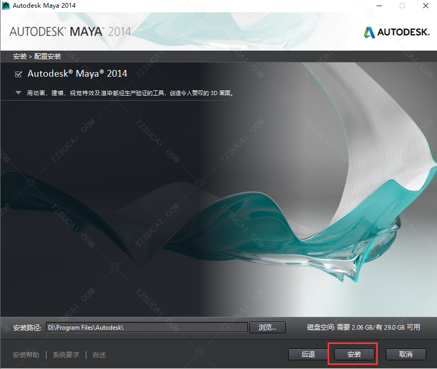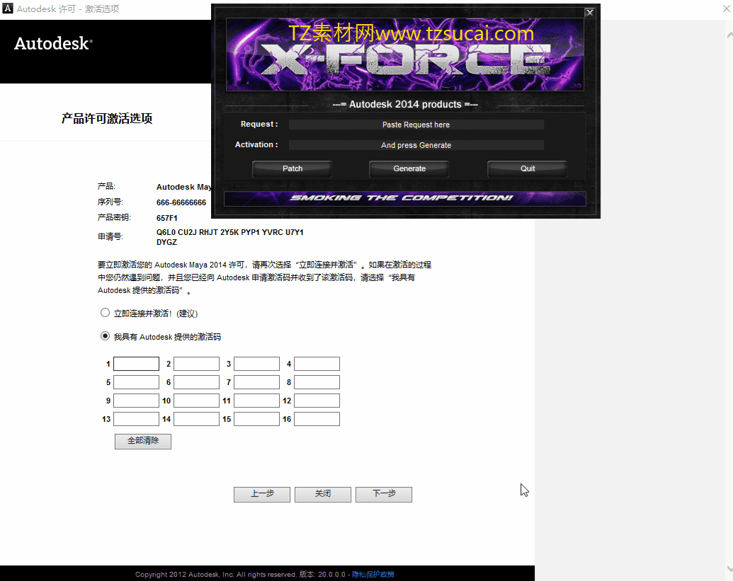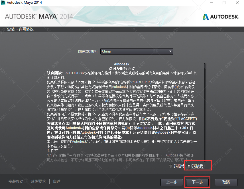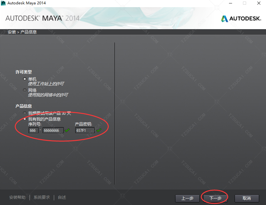 1、安装 Maya 2014;安装序列号为:666-69696969;产品密钥:657F1;