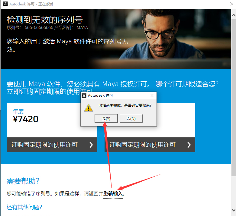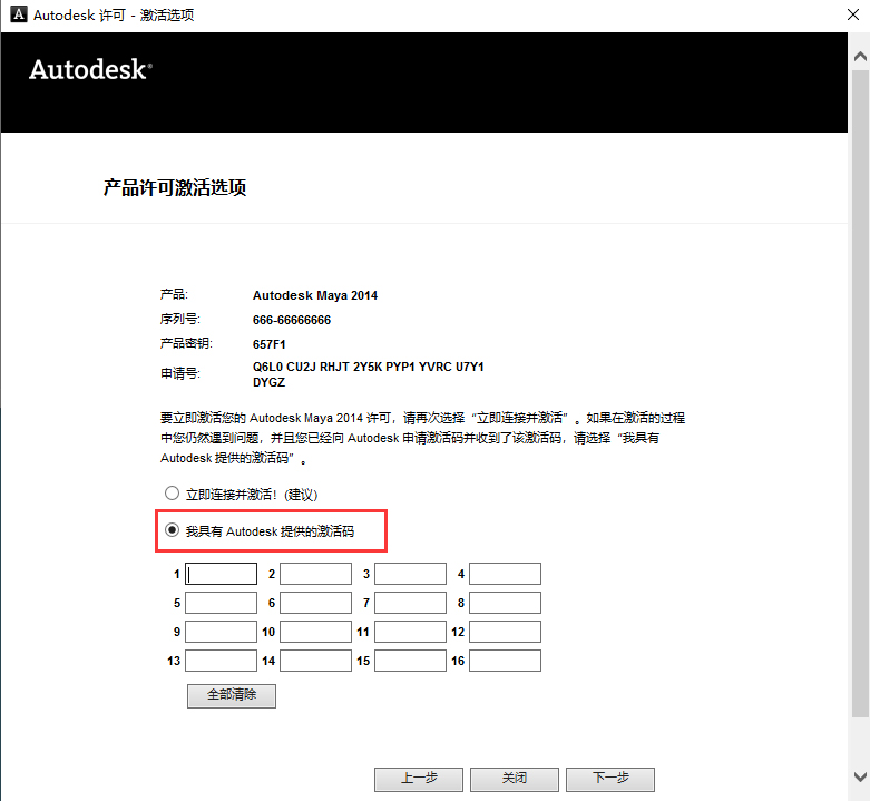 3、重新打开Maya,再次点击激活按钮,选择“我具有Autodesk提供的激活码”;