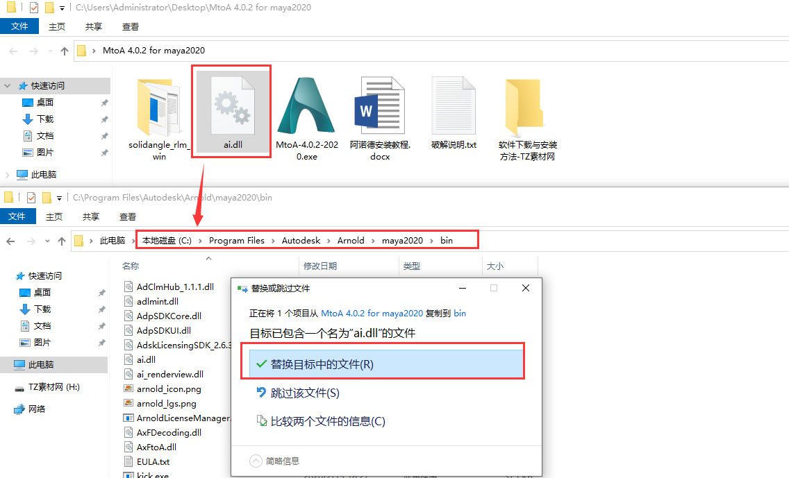 02.复制破解补丁ai.dll到C:\solidangle\mtoadeploy\2018\bin替换